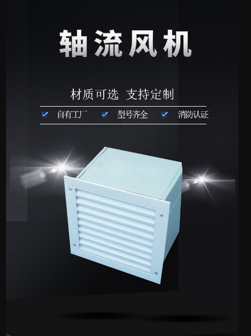 方形軸流風機軸流風機又叫局部通風機,就是與風葉的軸同方向的氣流(即風的流向和軸平行),如電風扇,空調(diào)外機風扇就是軸流方式運行風機,是工礦企業(yè)常用的一種風機,它不同于一般的風機。常規(guī)的軸流風機的電機和風葉都在一個圓筒里,外形就是一個筒形,用于局部通風,安裝方便,通風換氣效果明顯,安全,可以接風筒把風送到指定的區(qū)域.而方形軸流風機,與常規(guī)軸流風機的最大區(qū)別在于,方形軸流風機的電機和風葉都在一個圓筒里,外形就是方形的,比圓筒型風機安裝方便。