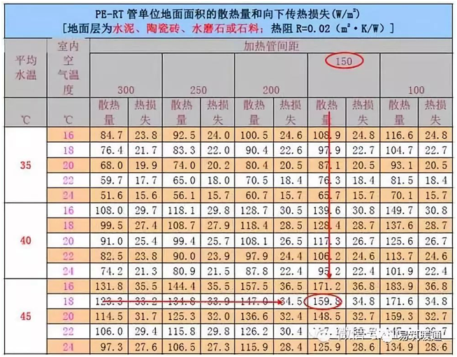 管道間距取決于管道、室內(nèi)設(shè)計(jì)溫度、供水溫度、地板材料等因素。