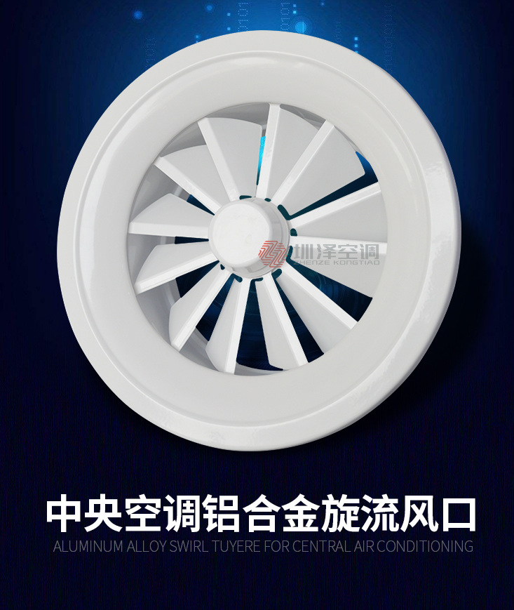 2. 旋流風口的材質主要有鋼制和鋁合金兩類。